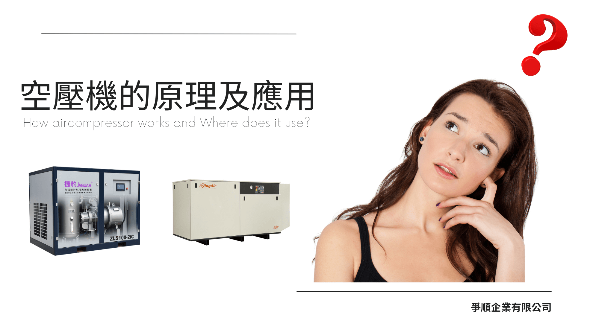 (1)往復式空壓機 (2)捷豹永磁變頻螺旋式空壓機 (3)義大利瑪泰迴轉式空壓機
